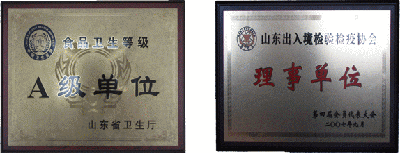 公司现已取得出口卫生注册、欧盟注册,通过HACCP认证、IFS、BRC、MSC认证、ISO9001:2008认证及ETI认证。通过了山东省防疫部门的检测,被授予"A类食品卫生单位"。